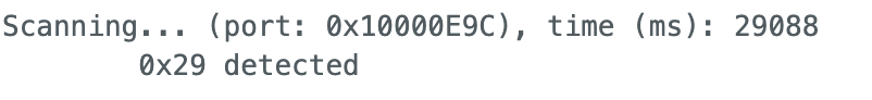 I first started off by running the example program under File->Examples->Apollo3->Example05_Wire_I2C to verify the I2C address of the ToF sensor. As shown in the image below, the program prints an address of 0x29, which is different than the 0x52 address specified by the datasheet. But upon further analysis, the datasheet says the LSB of the address is the read/write bit, and 0x29 is just 0x52 shifted right a bit, so this makes sense.