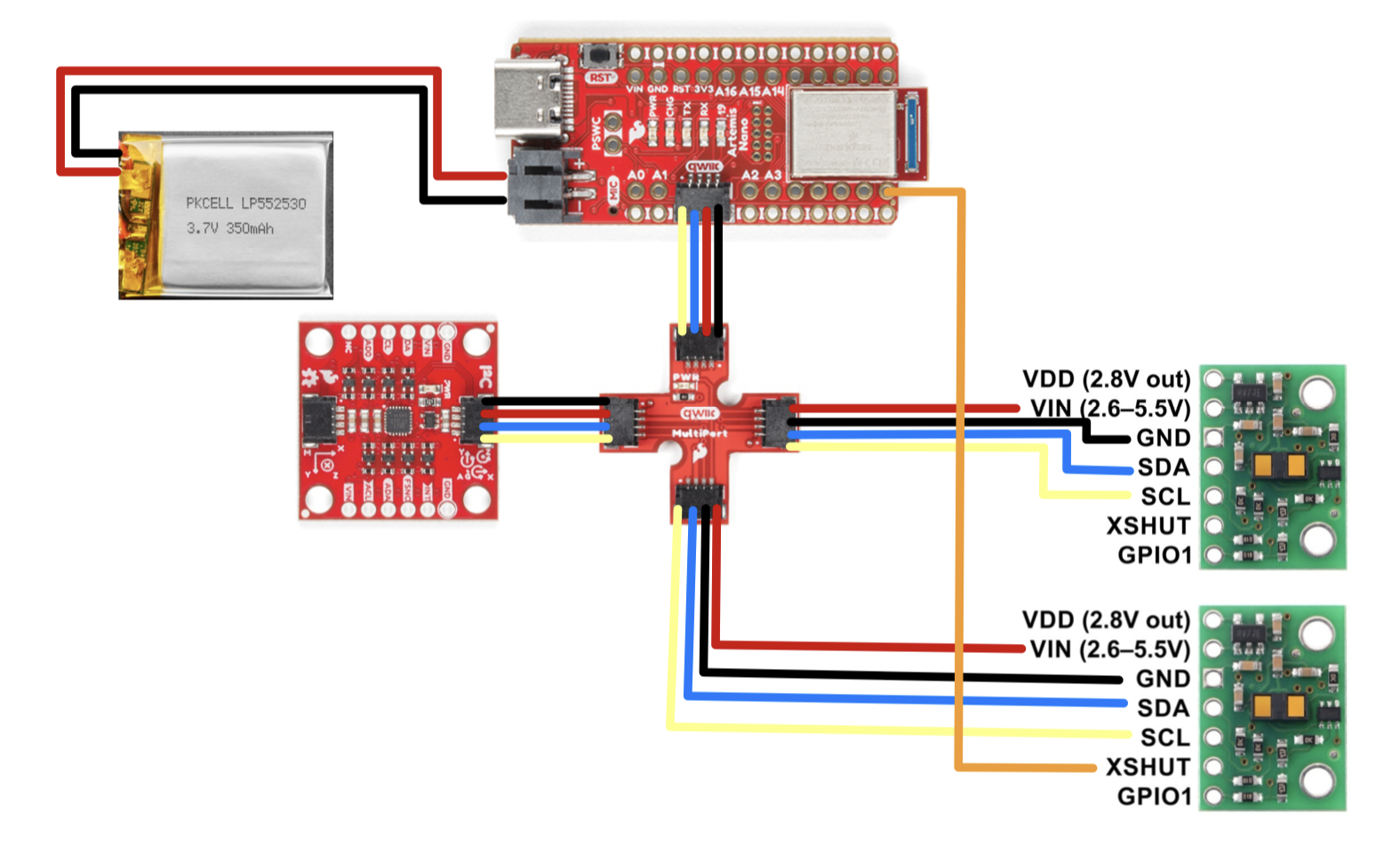Below is photo of my setup with both ToF sensors and the IMU connected to the QWIIC breakout board.